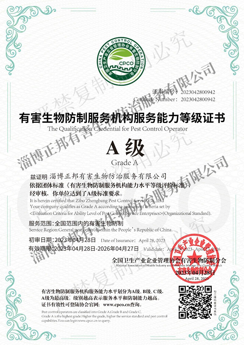 您好,歡迎訪問正邦有害生物防治服務有限公司,是知名的淄博殺蟲公司,淄博滅老鼠公司,淄博滅蟑螂公司~