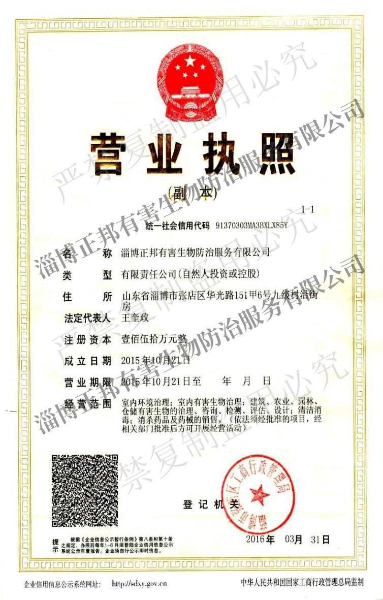 您好,歡迎訪問正邦有害生物防治服務(wù)有限公司,是知名的淄博殺蟲公司,淄博滅老鼠公司,淄博滅蟑螂公司~